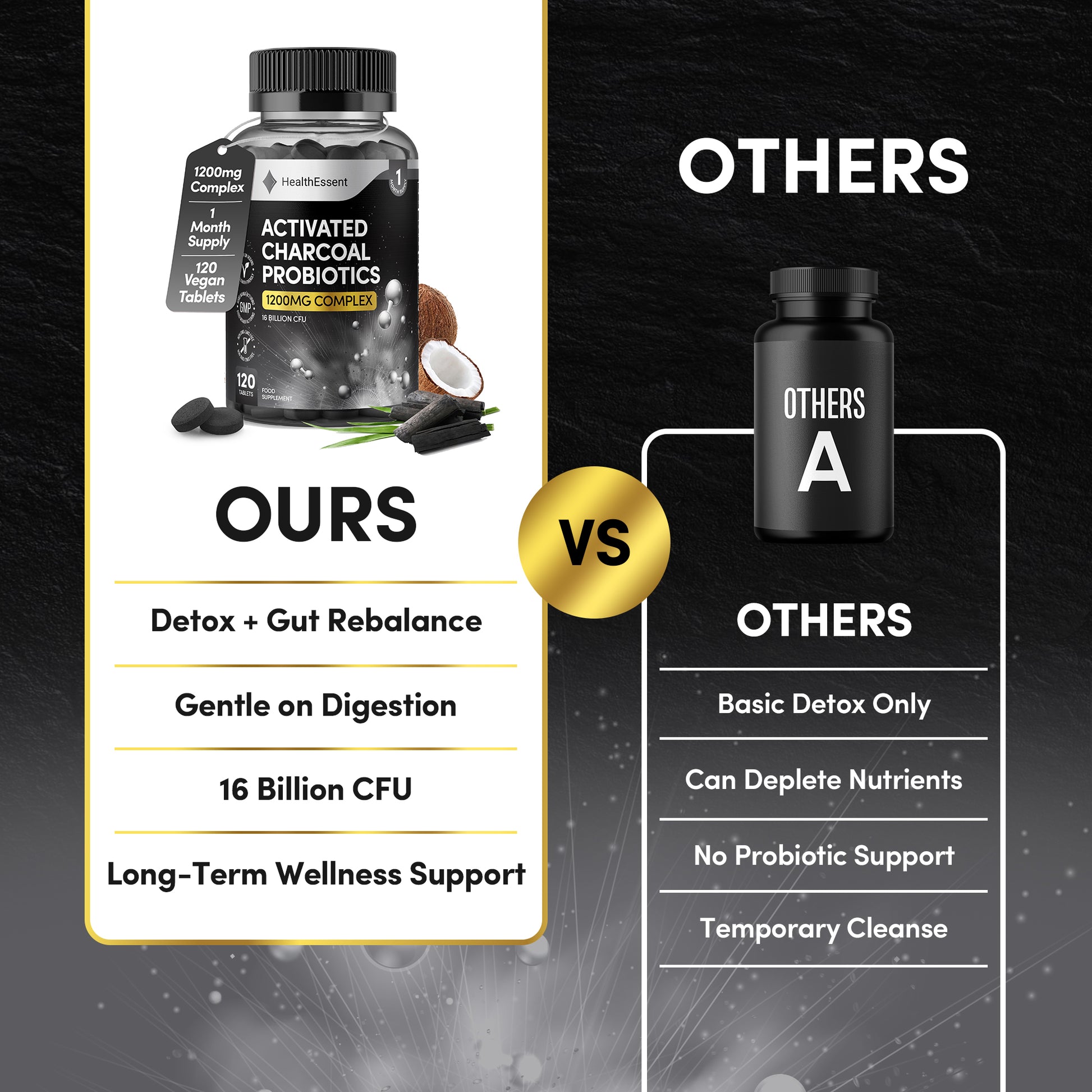A full daily serving delivers 1200mg charcoal and 16 billion CFU, providing a robust combination for those seeking a high-potency option.